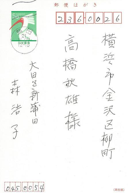 谷さんは知人ですが、心のかよった友人のような面もありました。強く主張する人ですが、根は優しい性格もある人です。 葉書[表](宛先は旧、差出は新), 葉書[裏]