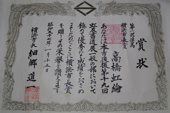 母が短冊と筆を差し出して、先生の作品を書いてもらったものです。